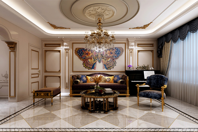 在布局上,配色以白、金的木色為主調。結構粗厚的沙發,圓形的鼓型茶幾,搭配搶眼的古典細節鑲飾,呈現皇室貴族般的品味。風格則偏于莊重大方,整個建筑多采用對稱造型,恢宏的氣勢,豪華舒適的居住空間,屋頂多采用孟莎式,坡度有轉折,上部平緩,下部陡直,呈現出浪漫典雅風格。,點綴在自然中,崇尚沖突之美。